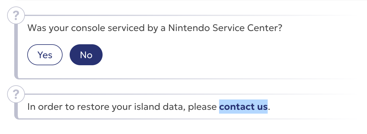 People forget that at launch save file transfers weren't possible at all for New Horizons. In July 2020, 4 months after release, an island backup tool was released, allowing you to keep a backup of your island on the internet. But to continue the bizarre secrecy around island life, the tool required, and still does require, a real life phone call to Nintendo to restore data from.