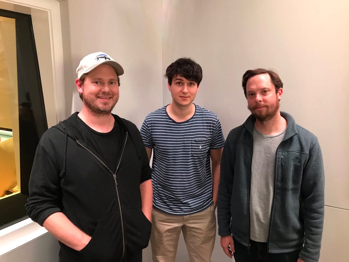Time Crisis hosts Ezra Koenig and Jake Longstreth, with guest Tim Heidecker, in 2017